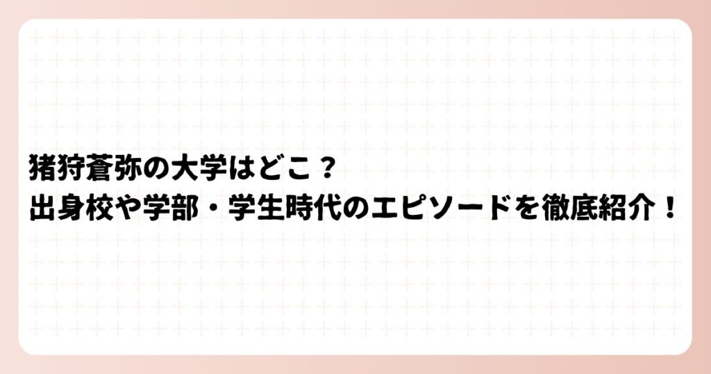 猪狩蒼弥の大学はどこ?出身校や学部・学生時代のエピソードを徹底紹介!
