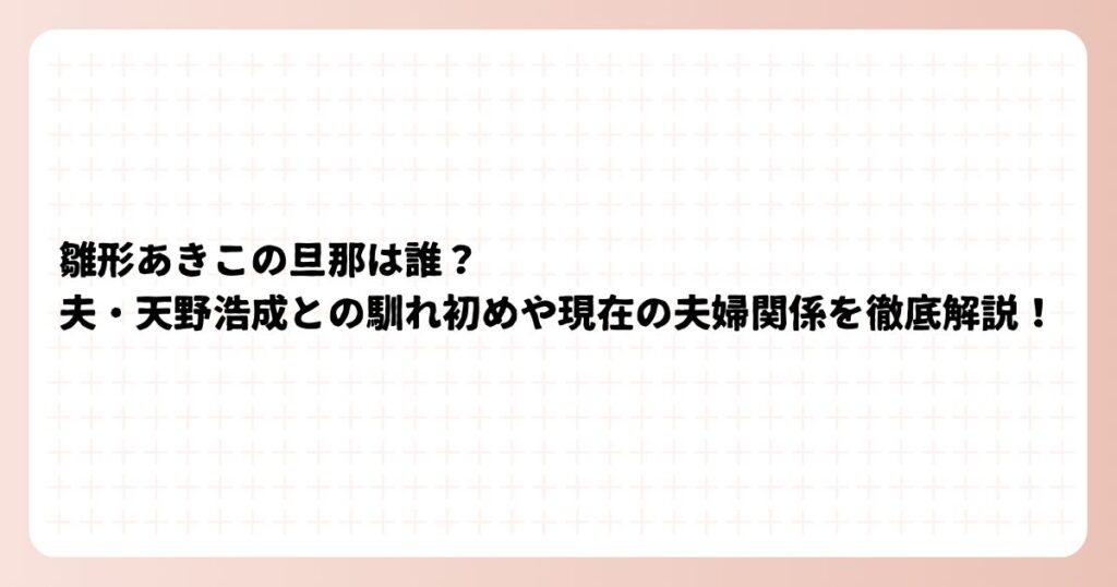 雛形あきこの旦那は誰?夫・天野浩成との馴れ初めや現在の夫婦関係を徹底解説!