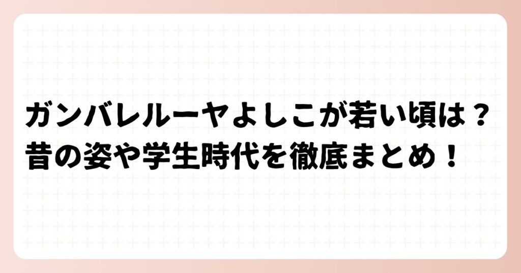 ガンバレルーヤよしこが若い頃は?昔の姿や学生時代を徹底まとめ!