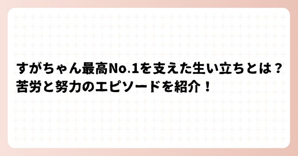 すがちゃん最高No.1を支えた生い立ちとは?苦労と努力のエピソードを紹介!