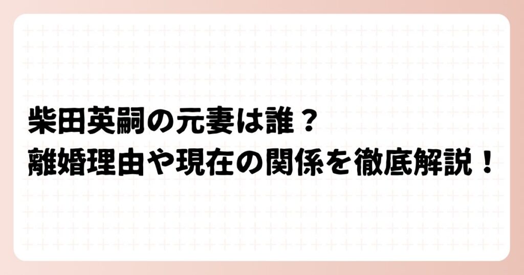 柴田英嗣の元妻は誰?離婚理由や現在の関係を徹底解説!
