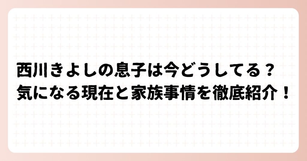 お笑い芸人として長年活躍する西川きよしさん。 「小さなことからコツコツと」のフレーズで知られる西川きよしさんですが、息子さんは今どうしているのか、気になる現在と家族事情はどうなっているのか気になりますよね。 今回は、西川きよしさんの息子さ... -