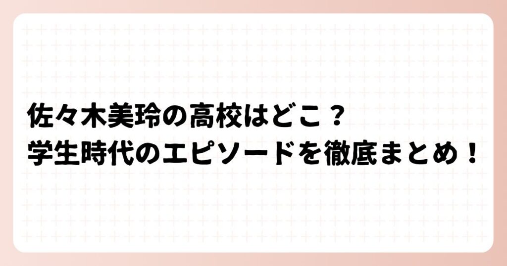 日向坂46のメンバーとして活躍する佐々木美玲さん。 明るく元気なキャラクターで人気の佐々木美玲さんですが、高校はどこで、学生時代のエピソードはどのようなものなのか気になりますよね。 今回は、佐々木美玲さんの高校について詳しく調べてみました! ... -
