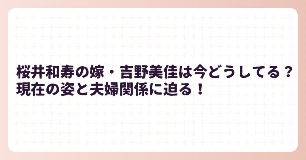 Mr.Childrenのボーカルとして日本の音楽シーンを牽引する桜井和寿さん。 数々のヒット曲を生み出し、多くのファンに愛され続けています。 そんな桜井和寿さんのお嫁さん・吉野美佳さんは今どうしているのでしょうか? そこで今回は、桜井和寿さんのお嫁さ... -