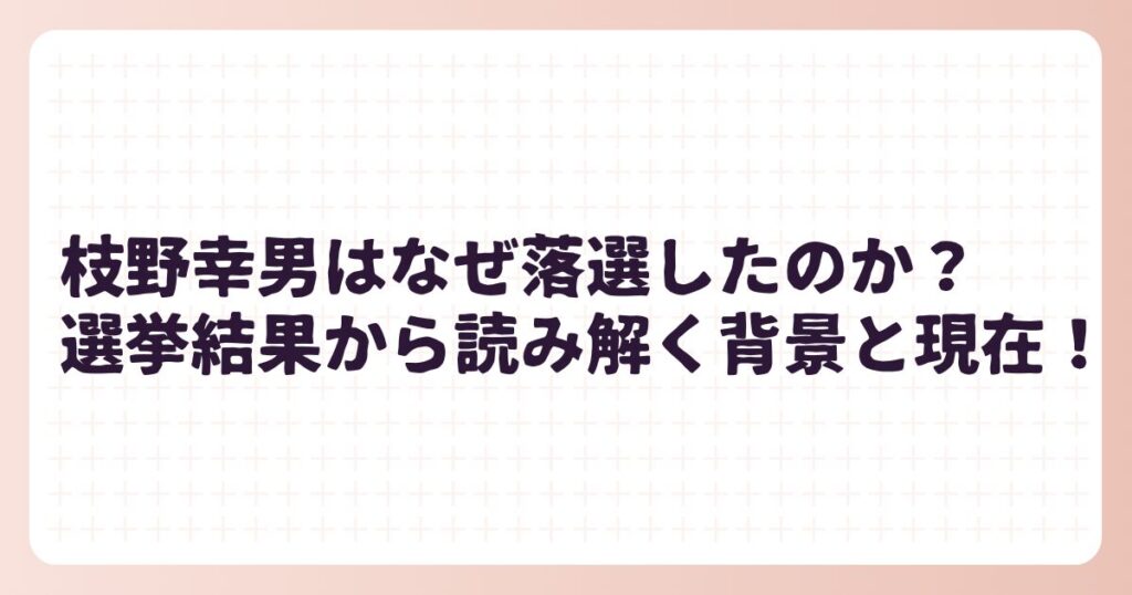 玄葉光一郎はなぜ落選したのか?選挙結果から読み解く背景と現在!