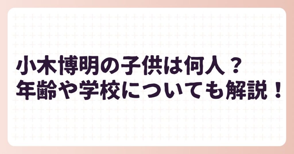 お笑いコンビ「おぎやはぎ」として活躍する小木博明さん。テレビで見せる毒舌キャラとは裏腹に、実は愛妻家で子煩悩なパパとしても知られています。そんな小木博明さんの子供について、人数や年齢、通っている学校など気になる方も多いのではないでしょう... -