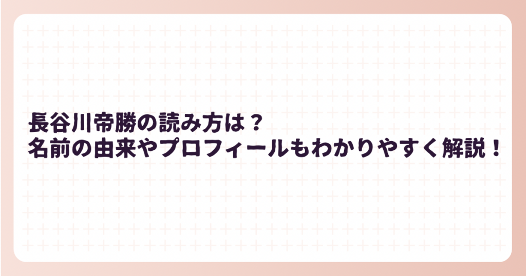 長谷川帝勝の読み方は?名前の由来やプロフィールもわかりやすく解説!