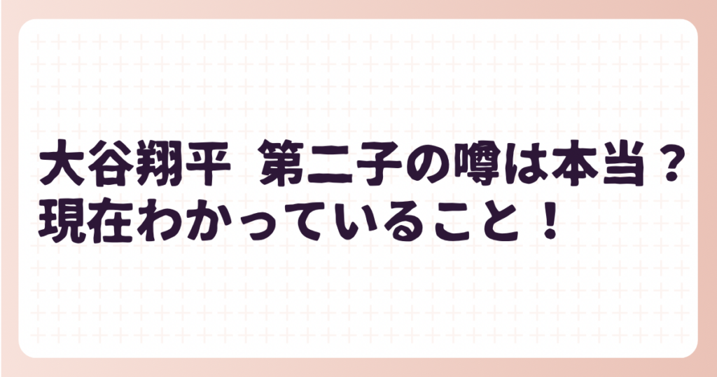 メジャーリーグで二刀流として活躍し、世界中から注目を集める大谷翔平さん。 そんな大谷翔平さんですが、第二子の噂が浮上しているようです。 この記事では、大谷翔平さんの第二子に関する噂の真相と、現在わかっている情報についてお伝えしていきます。 ... -