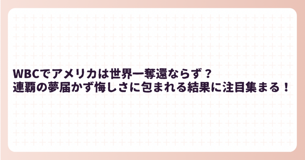 WBCでアメリカは世界一奪還ならず?連覇の夢届かず悔しさに包まれる結果に注目!