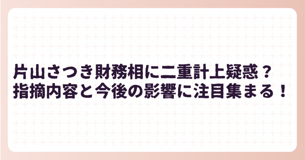 片山さつき財務相に二重計上疑惑?指摘内容と今後の影響に注目集まる!