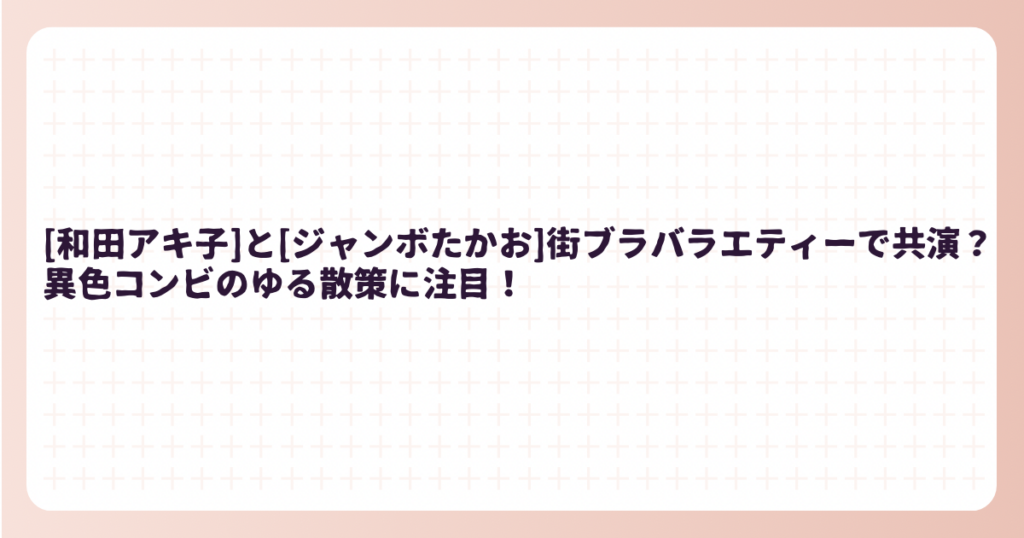 [和田アキ子]と[ジャンボたかお]街ブラバラエティーで共演?異色コンビのゆる散策に注目!