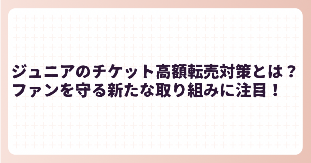 ジュニアのチケット高額転売対策とは?ファンを守る新たな取り組みに注目!