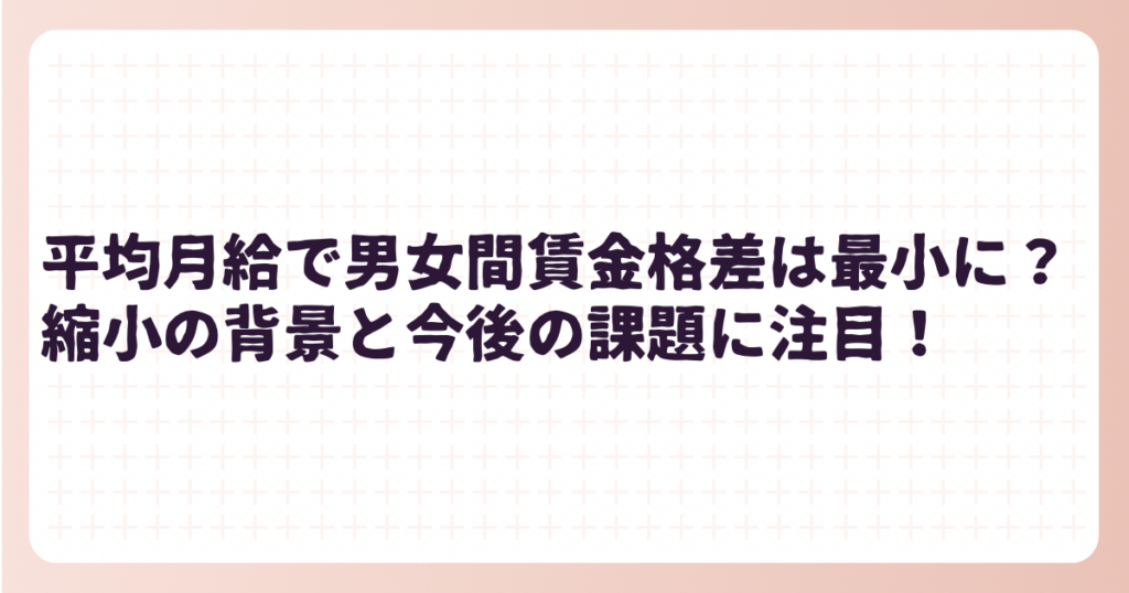 平均月給で男女間賃金格差は最小に?縮小の背景と今後の課題に注目!