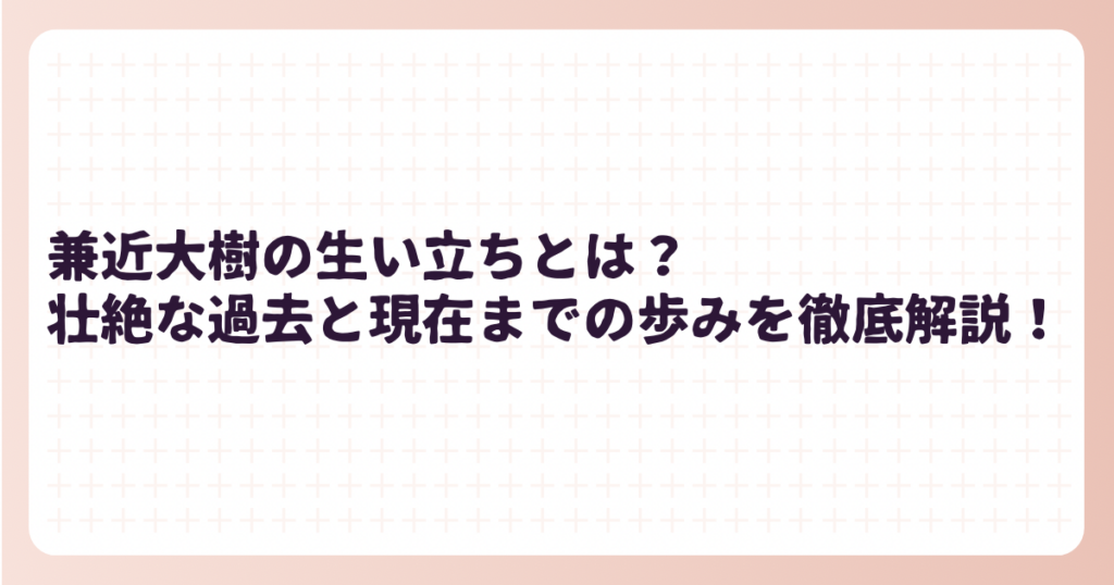 兼近大樹の生い立ちとは?壮絶な過去と現在までの歩みを徹底解説!