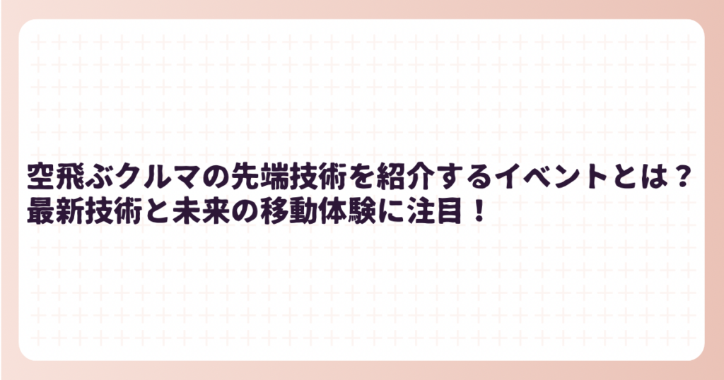 空飛ぶクルマの先端技術を紹介するイベントとは?最新技術と未来の移動体験に注目!
