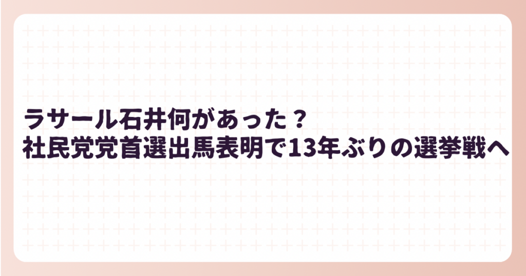 歯に衣着せぬ発言と行動力が魅力的な[ラサール石井](chatgpt://generic-entity?number=0)さん。 そんなラサール石井さんですが何があったのでしょうか。 今回大きな話題となっているのは社民党党首選への出馬表明でした。 社民党党首選に出馬表明とは 出典... -