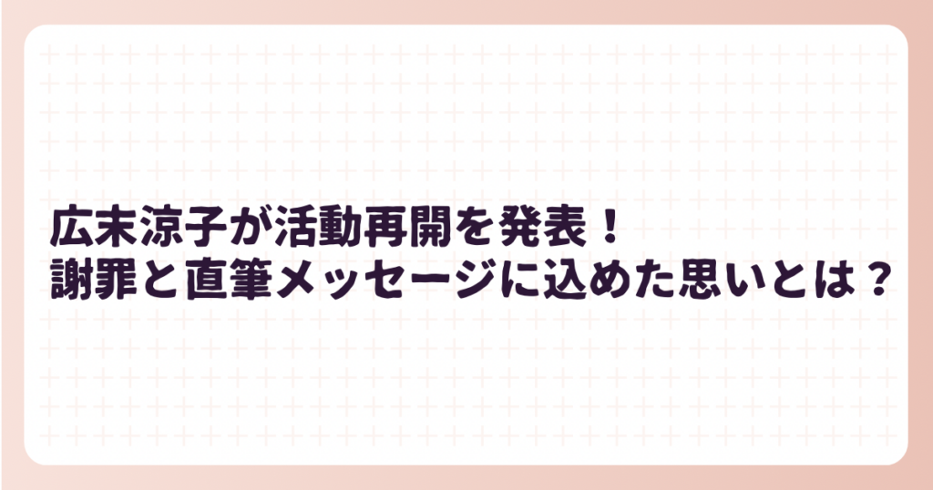 広末涼子が活動再開を発表! 謝罪と直筆メッセージに込めた思いとは?