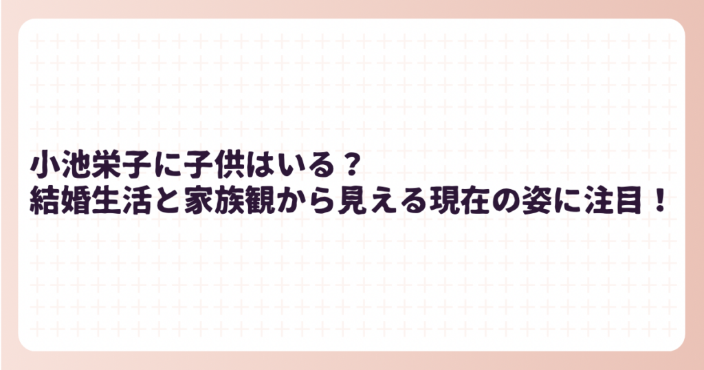 女優やタレントとして幅広く活躍している[小池栄子]さん。 そのプライベートについても多くの関心が集まっており、とくに「子供はいるのか?」という疑問を持つ人は少なくありません。 この記事では、小池栄子さんの子供の有無や家族観、夫との結婚生活に... -