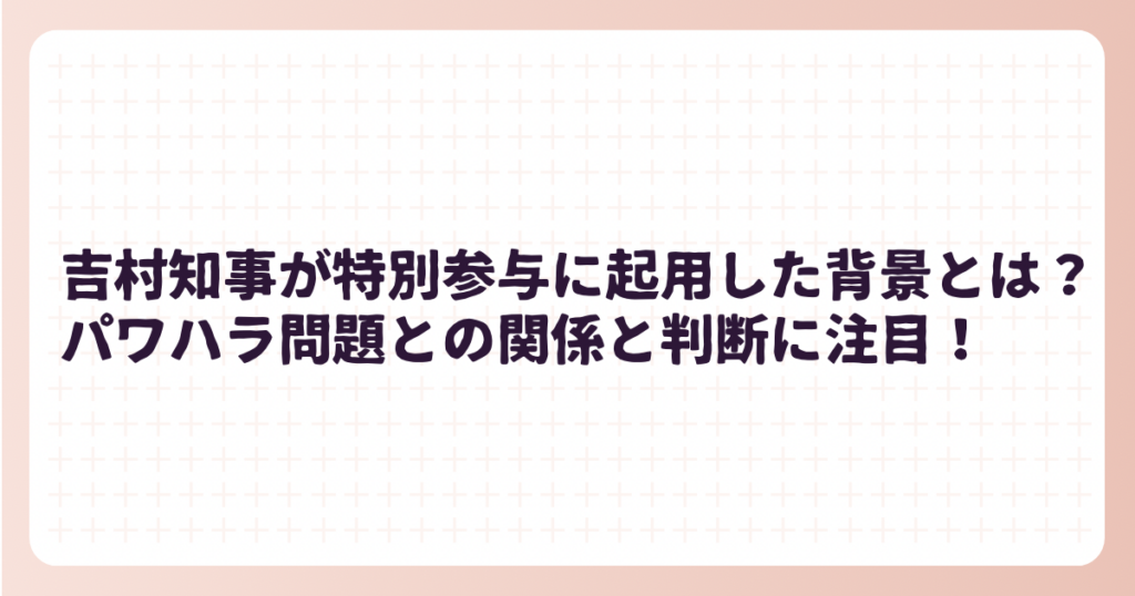 吉村知事が特別参与に起用した背景とは?パワハラ問題との関係と判断に注目!