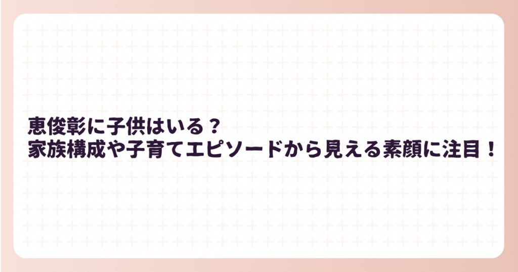 恵俊彰さんは、明るいキャラクターと親しみやすい司会で人気を集めるタレントです。 テレビで見せる姿からは想像しにくいですが、実は4人の子供を育てる父親でもあります。 この記事では、恵俊彰さんの家族構成や子供たちの情報、そして心温まる子育てエピ... -