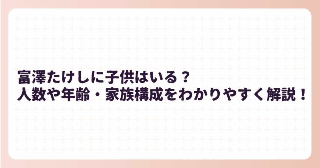富澤たけしに子供はいる?人数や年齢・家族構成をわかりやすく解説!