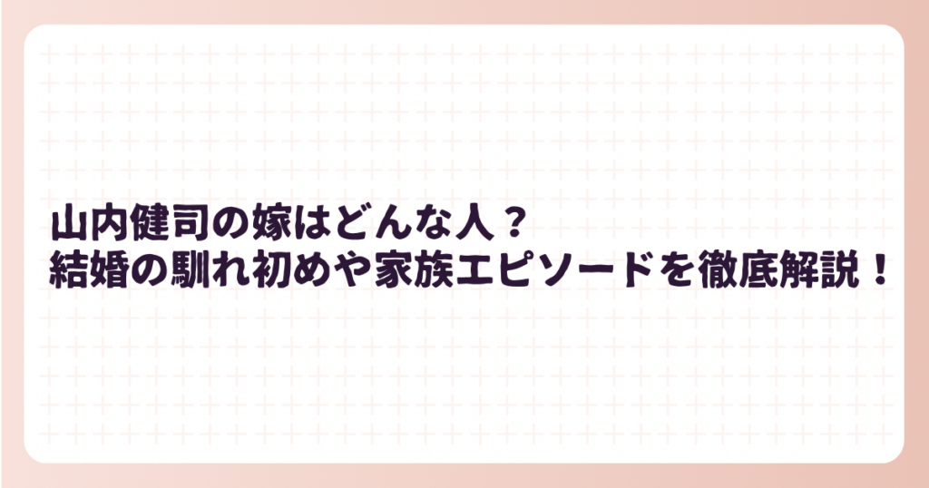 山内健司の嫁はどんな人?結婚の馴れ初めや家族エピソードを徹底解説!