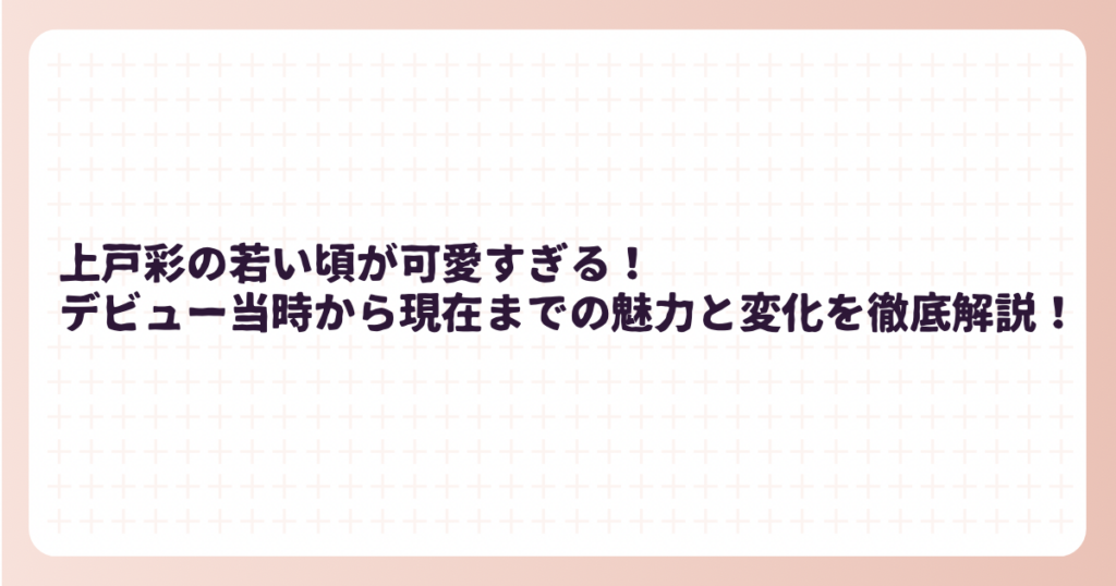 上戸彩の若い頃が可愛すぎる!デビュー当時から現在までの魅力と変化を徹底解説!