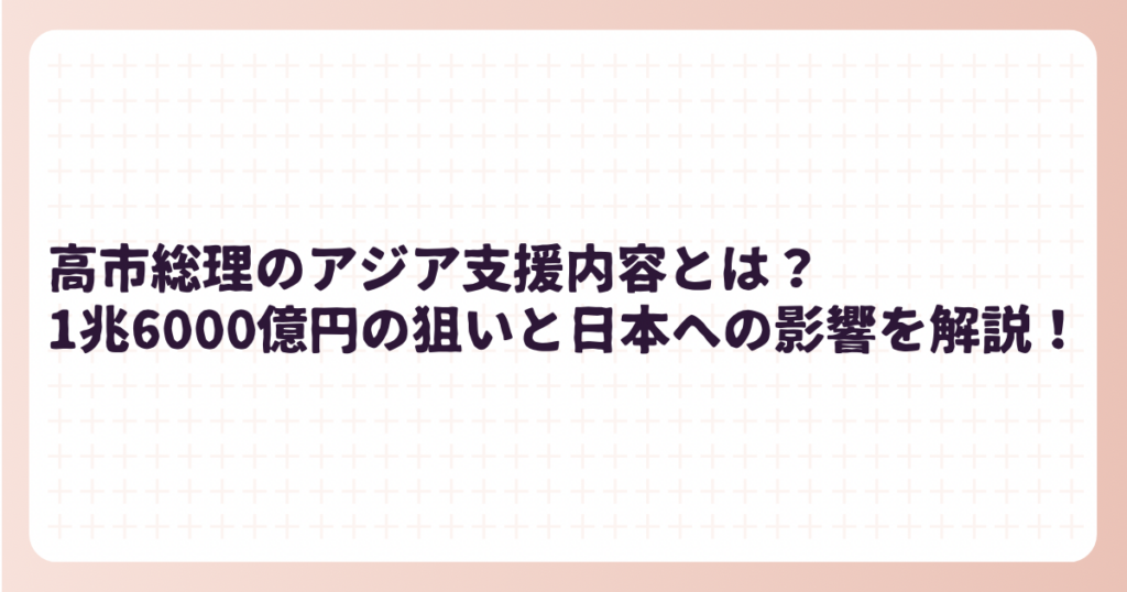 高市総理のアジア支援内容とは?1兆6000億円の狙いと日本への影響を解説!