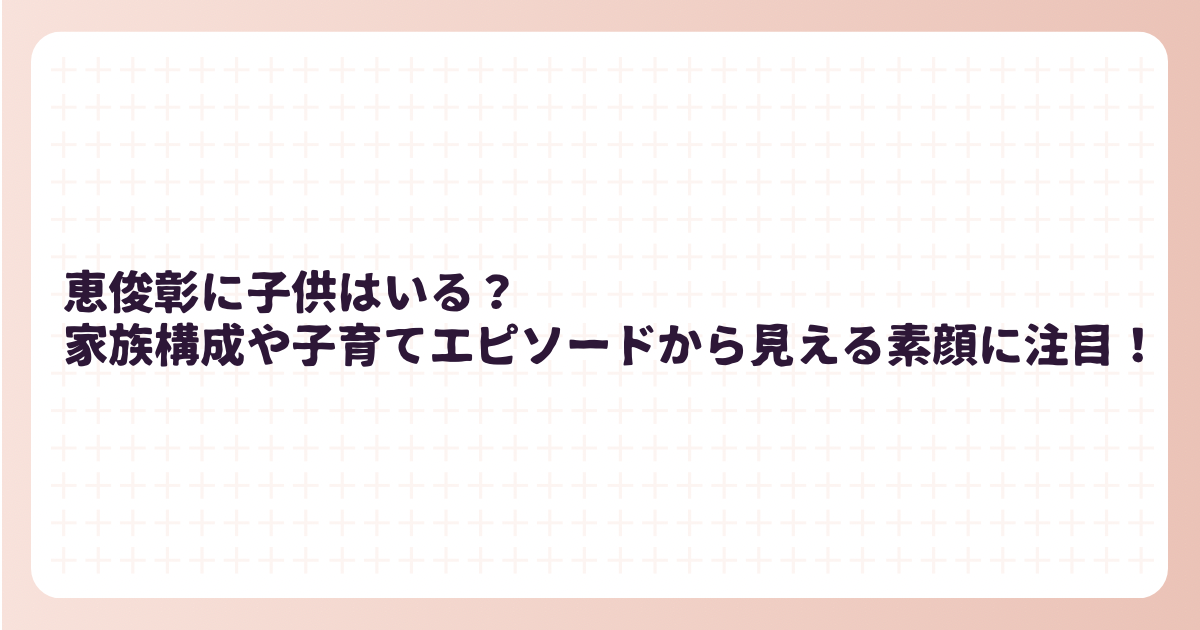 この記事では、恵俊彰さんの家族構成や子供たちの情報、そして心温まる子育てエピソードについて詳しくご紹介します。