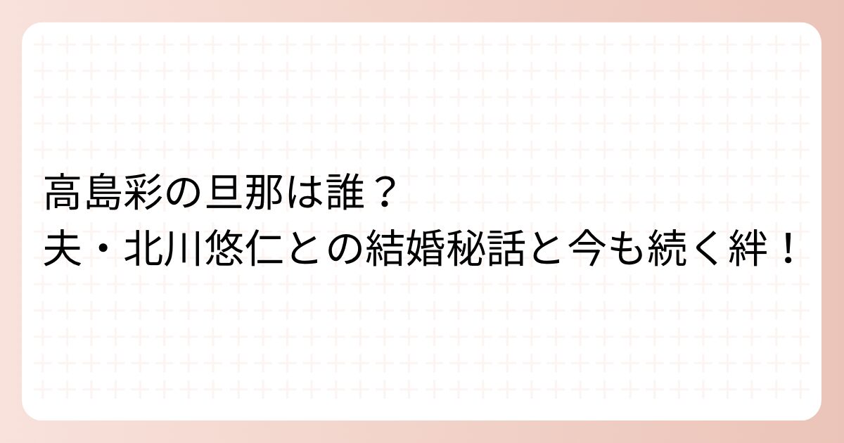 高島彩さんの旦那さんは、人気音楽デュオ「ゆず」のメンバーである北川悠仁さんで、テレビ番組での出会いがきっかけとなったようです。