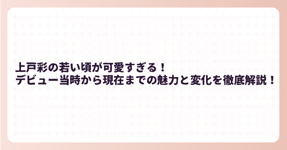 上戸彩の若い頃が可愛すぎる!デビュー当時から現在までの魅力と変化を徹底解説!