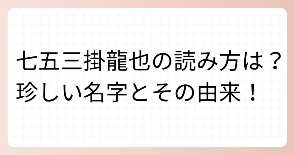 七五三掛龍也の読み方は?珍しい名字とその由来!