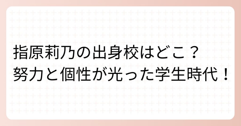 アイドルプロデューサーとして活躍する指原莉乃さん。 そんな指原莉乃さんですが、学生時代はどのような経験をしていたのでしょうか? 指原莉乃さんの出身校や学生時代のエピソードについて詳しく見ていきましょう。 指原莉乃の出身校はどこ?小学校から高... -