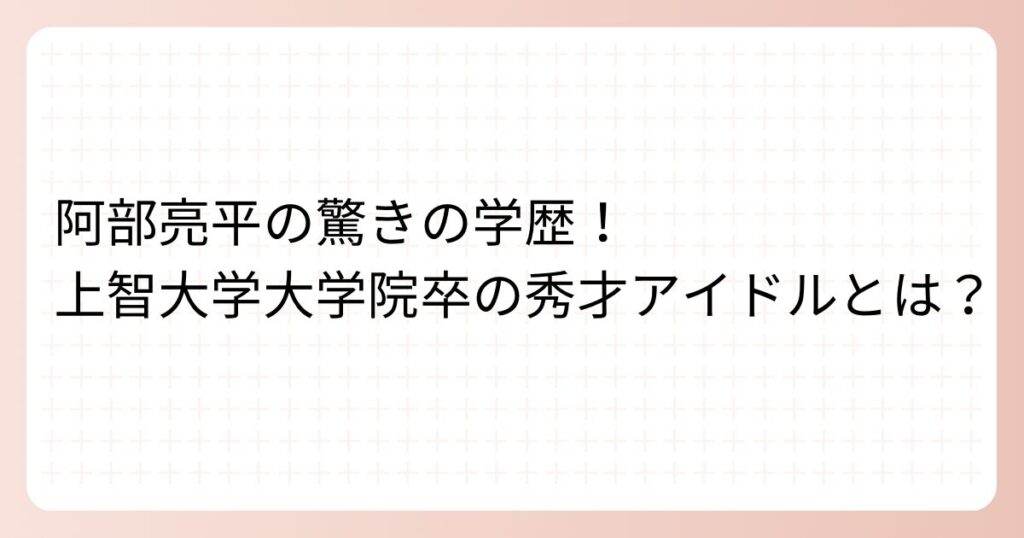 阿部亮平の驚きの学歴!上智大学大学院卒の秀才アイドルとは?