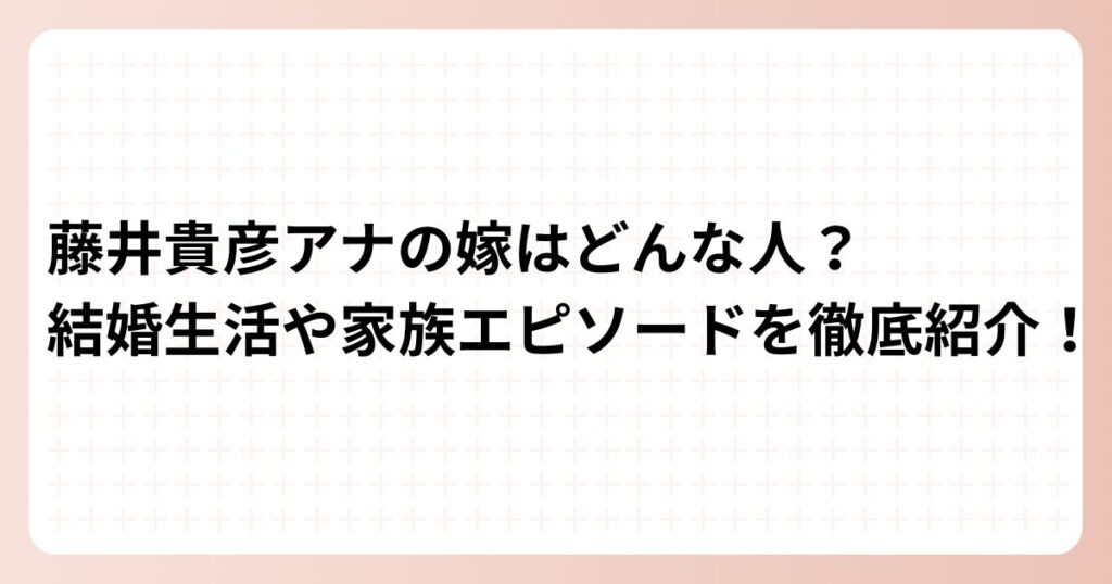 藤井貴彦アナの嫁はどんな人?結婚生活や家族エピソードを徹底紹介!