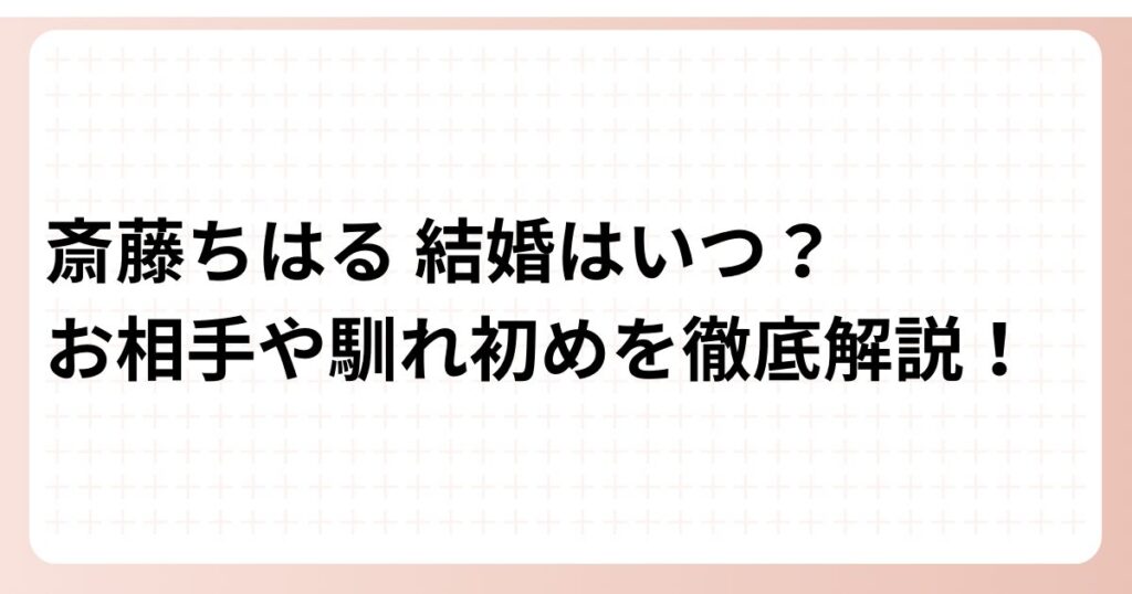 斎藤ちはる 結婚はいつ?お相手や馴れ初めを徹底解説!