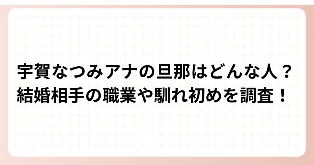 爽やかな笑顔と知的な雰囲気で人気のアナウンサー、宇賀なつみさん。 そんな宇賀なつみさんですが、元旦那さんはどのような方だったのでしょうか? 今回は、宇賀なつみさんの元旦那さんについて、その経歴や馴れ初め、そして結婚生活までを詳しくご紹介し... -