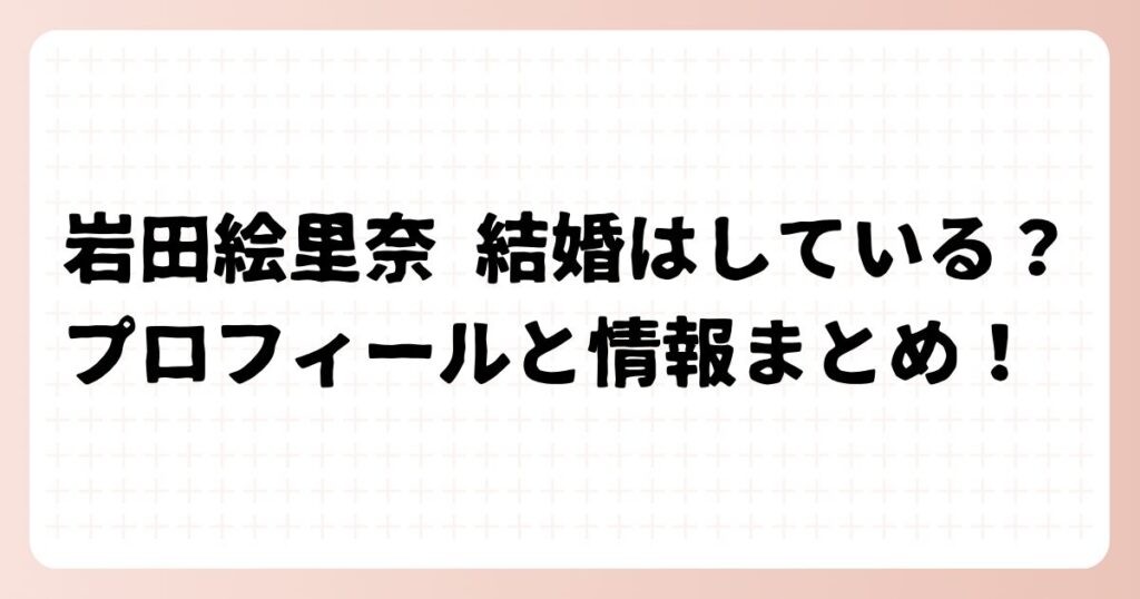 岩田絵里奈 結婚はしている?プロフィールと情報まとめ!