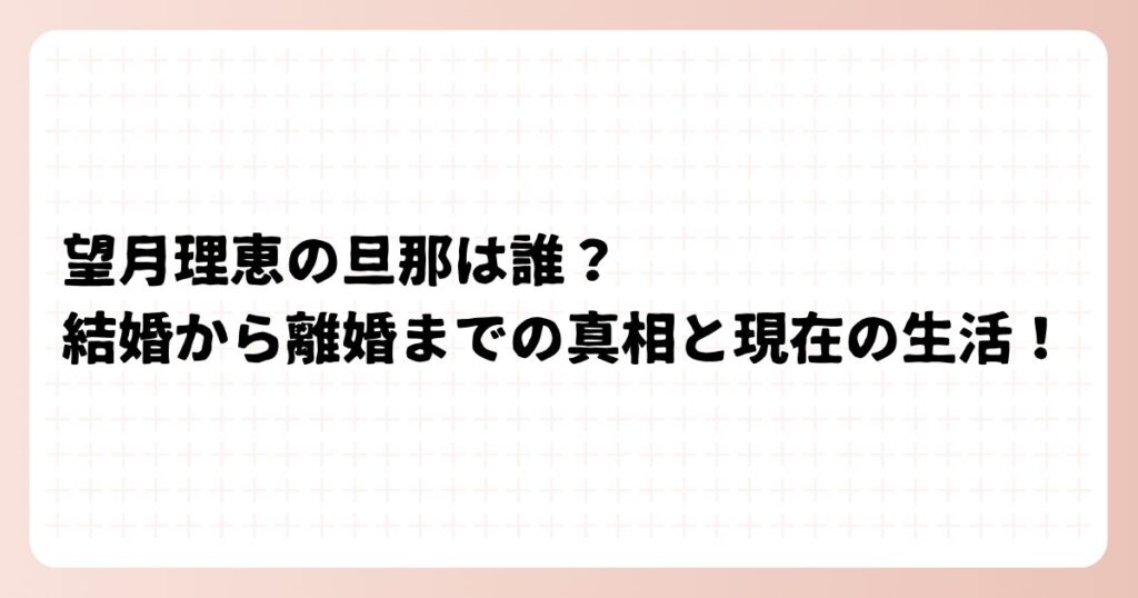 望月理恵の旦那は誰?結婚から離婚までの真相と現在の生活!