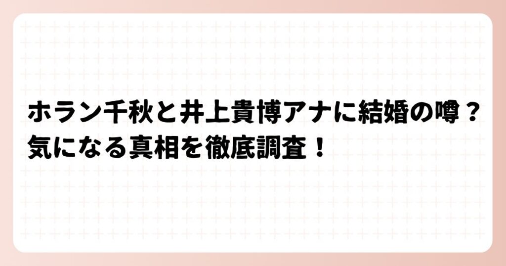 ホラン千秋と井上貴博アナに結婚の噂?気になる真相を徹底調査!