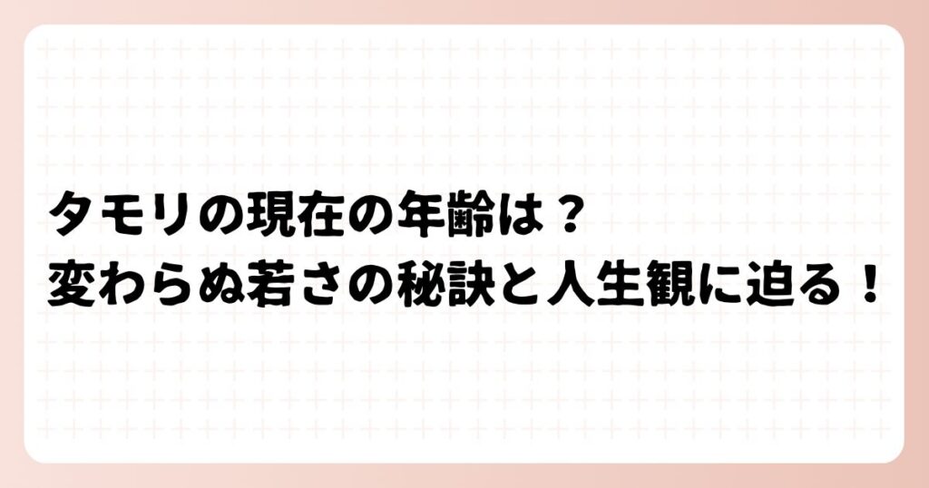 日本のテレビ界を代表する司会者として活躍するタモリさん。 そんなタモリさんですが、現在の年齢はいくつなのでしょうか。 また、変わらぬ若さの秘訣や人生観とはどのようなものなのでしょうか。 今回は、タモリさんの現在の年齢や、若さの秘訣、人生観に... -