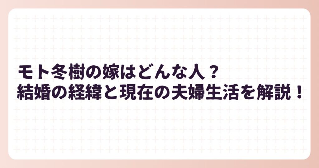 モト冬樹の嫁はどんな人?結婚の経緯と現在の夫婦生活を解説!
