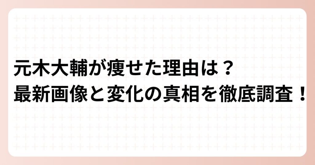 元木大輔が痩せた理由は?最新画像と変化の真相を徹底調査!