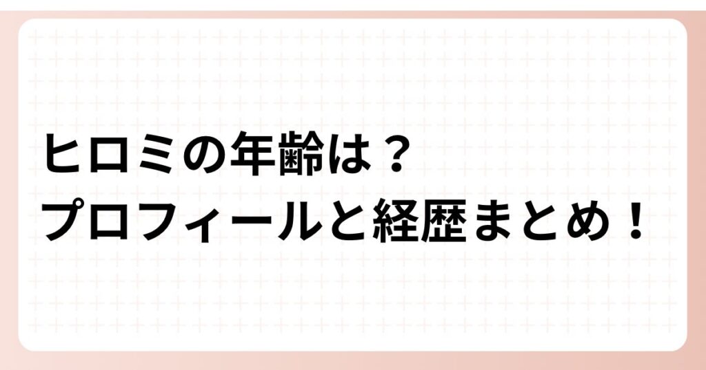 ヒロミの年齢は?プロフィールと経歴まとめ!