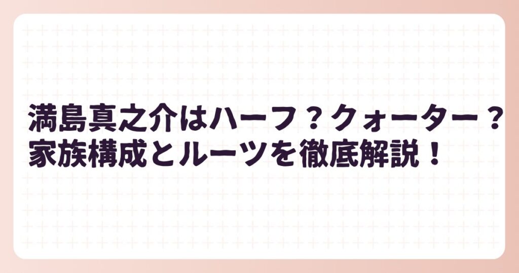 俳優として活躍する満島真之介さん。 そんな満島真之介さんですが、彫りの深い顔立ちからハーフではないかと噂されています。 果たして本当にハーフなのでしょうか? 今回は、満島真之介さんのルーツと家族構成について徹底的に解説します。 満島真之介は... -