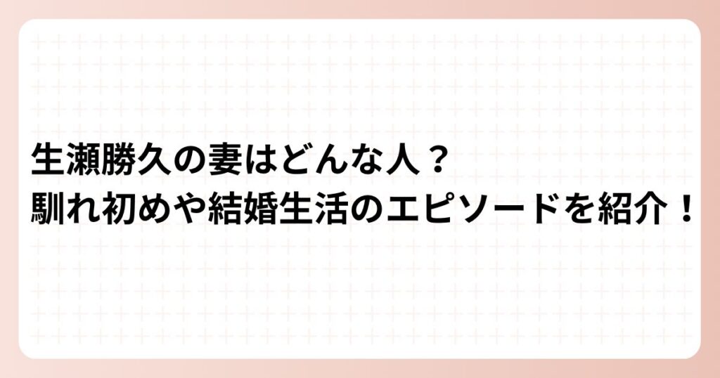 個性的な演技で人気を集める俳優の生瀬勝久さん。 そんな生瀬勝久さんですが、お嫁さんはどのような方なのでしょうか? 今回は、生瀬勝久さんのお嫁さんについて、馴れ初めや結婚生活のエピソードを詳しく紹介します。 生瀬勝久の妻はどんな人? 出典:デ... -