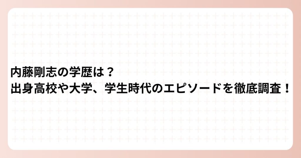 数々のドラマや映画で活躍する実力派俳優の内藤剛志さん。 そんな内藤剛志さんですが、意外にも優秀な学歴の持ち主なのでしょうか。 実は内藤剛志さんは、難関校出身でありながら大学を中退するというユニークな経歴の持ち主です。 今回は、内藤剛志さんの... -