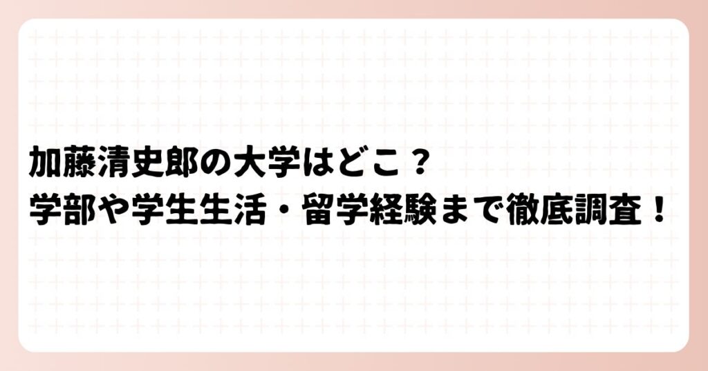 加藤清史郎の大学はどこ?学部や学生生活・留学経験まで徹底調査!