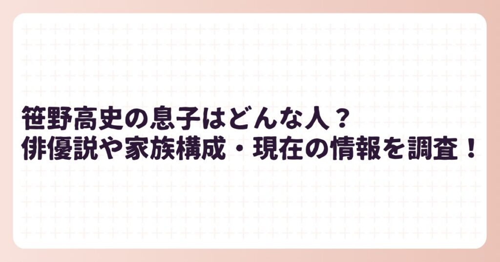 名バイプレイヤーとして数々の作品に出演している笹野高史さん。 独特の存在感と演技力で、多くのファンに愛されています。 そんな笹野高史さんには息子さんがいらっしゃることをご存知でしょうか? そこで今回は、笹野高史さんの息子はどんな人なのか、俳... -