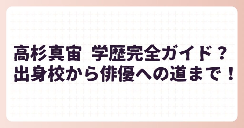 高杉真宙 学歴完全ガイド?出身校から俳優への道まで!